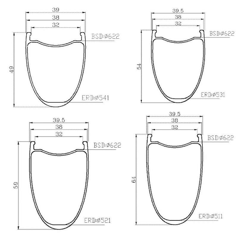Rims ERD: 541mm,531mm,521mm, 511mm